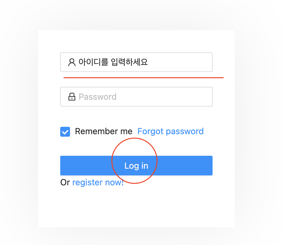 아이디, 비밀번호 입력