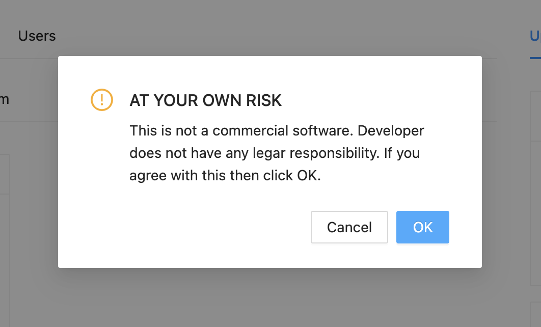 AT YOUR OWN RISK 확인창