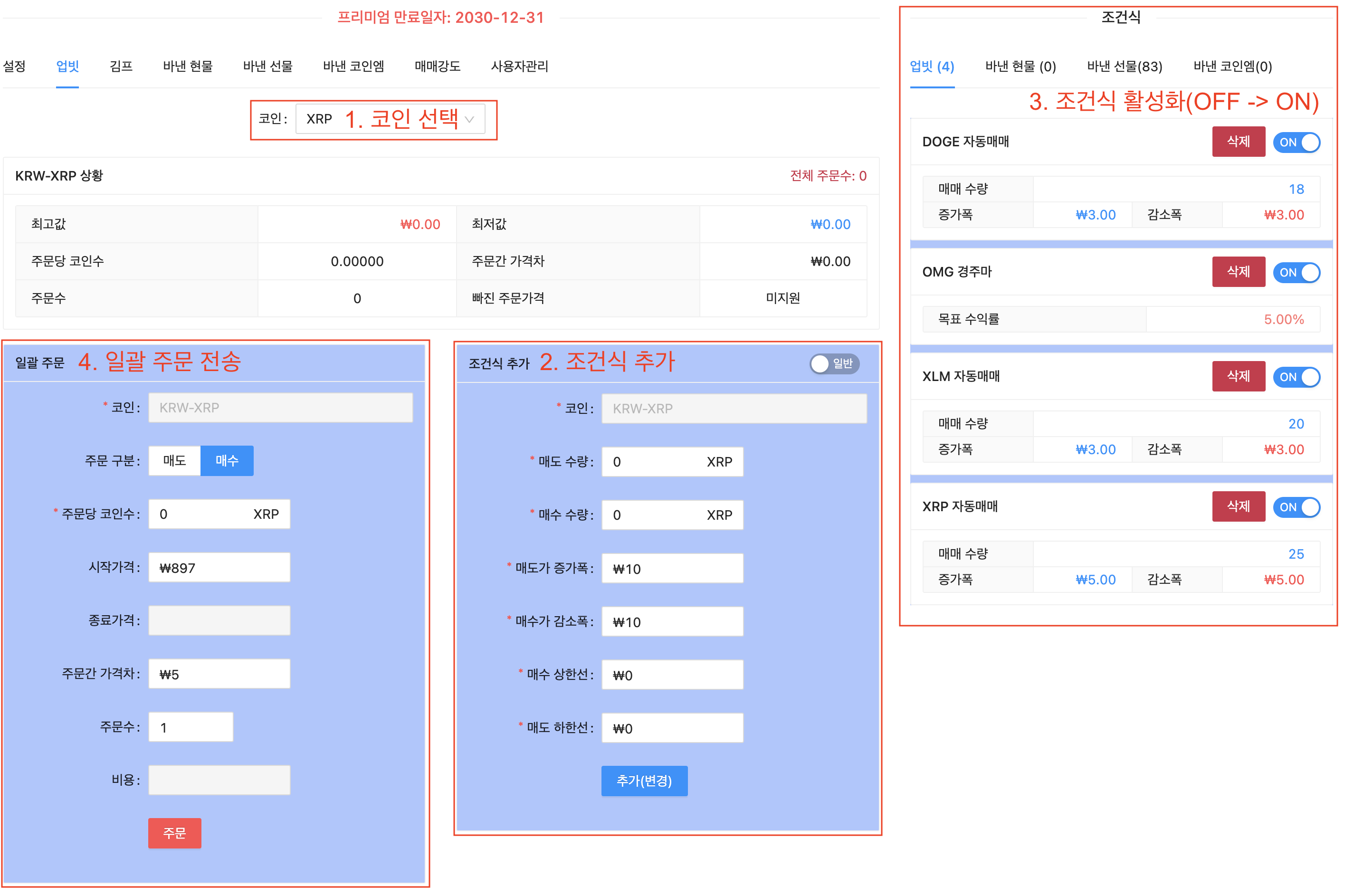 일괄 주문 및 자동매매 조건식 추가할 코인을 선택 - 조건식 추가