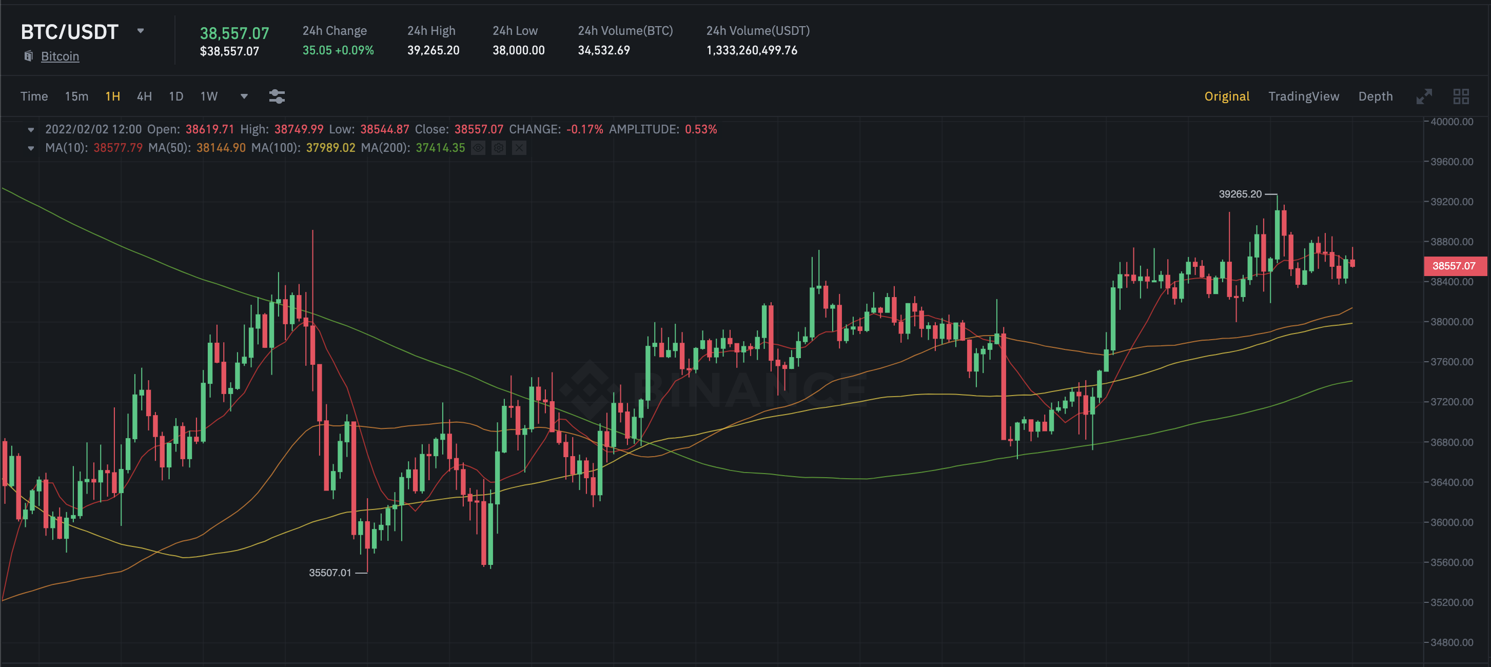 현재가: $38,557(+$357)