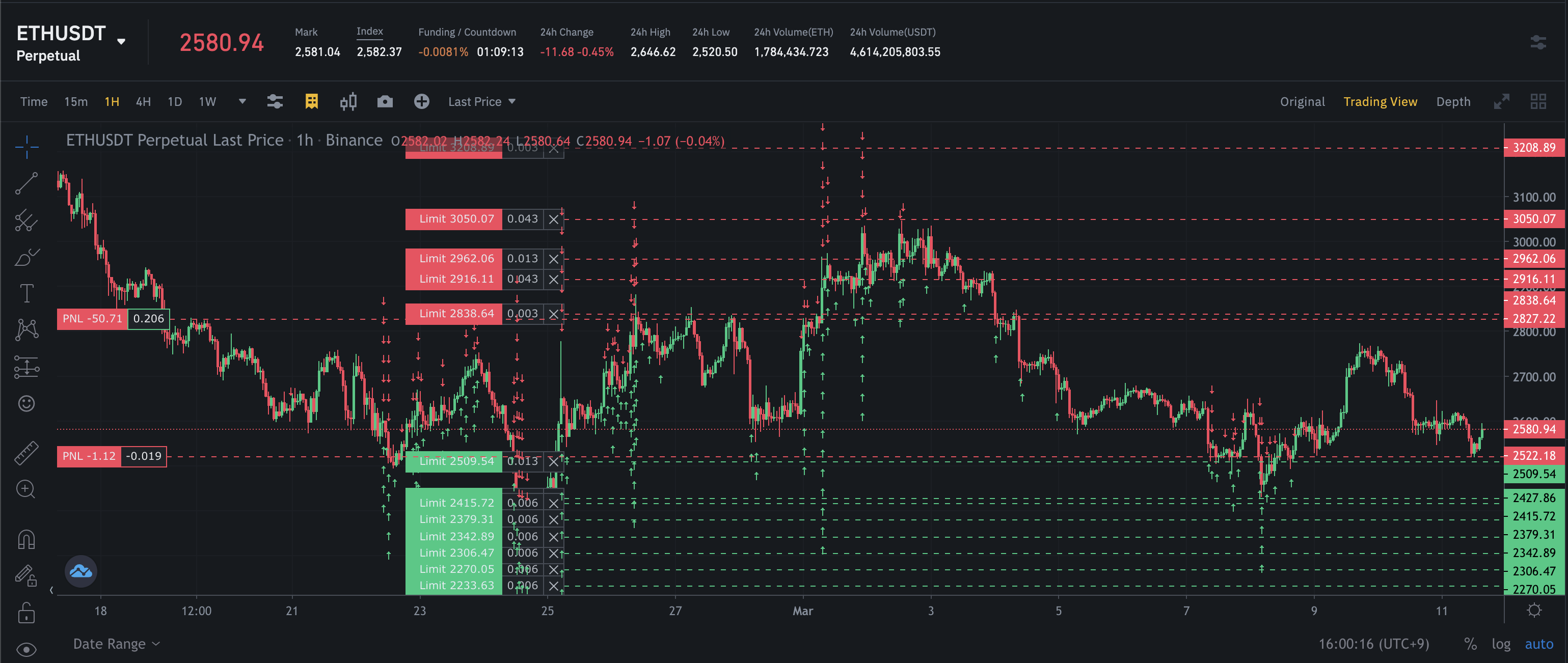 ETH - 실현수익: +$71.76, Funding Fee: -$0.57