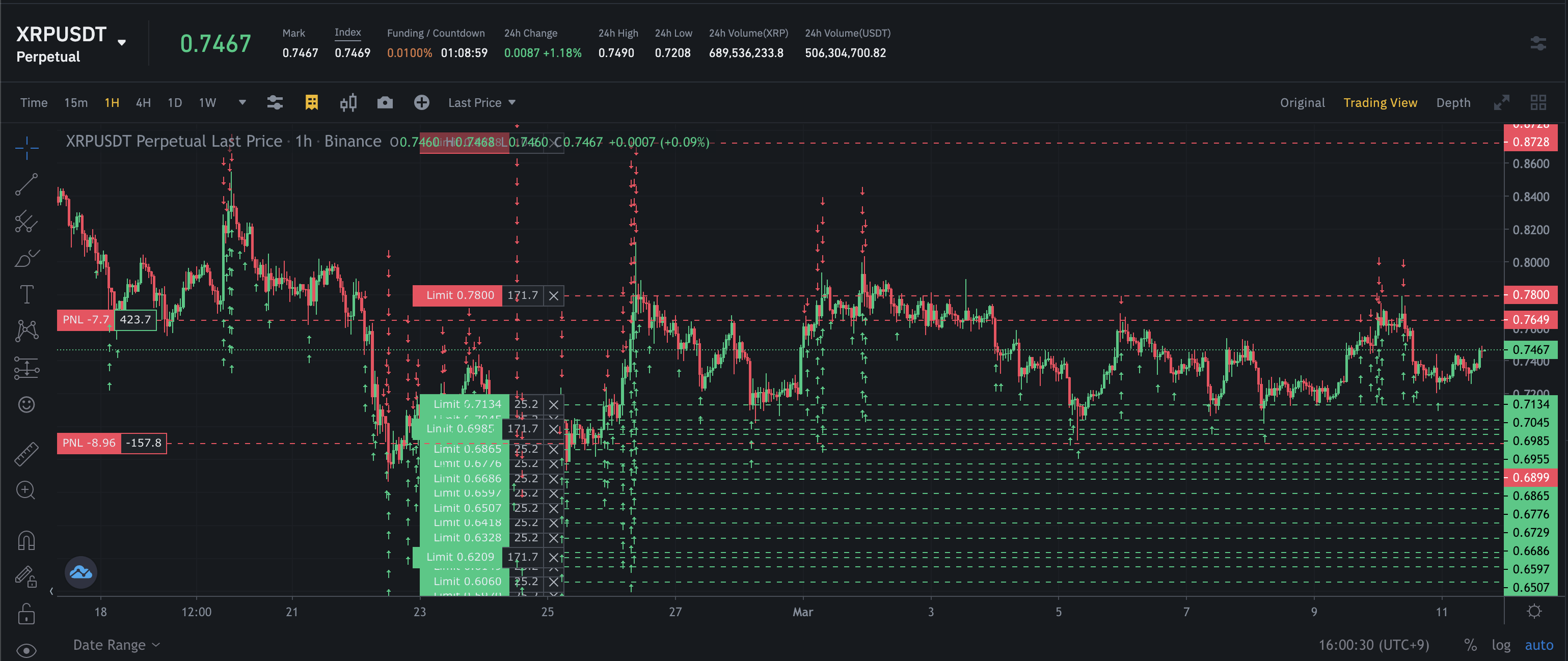 XRP - 실현수익: +$78.22, Funding Fee: -$0.26