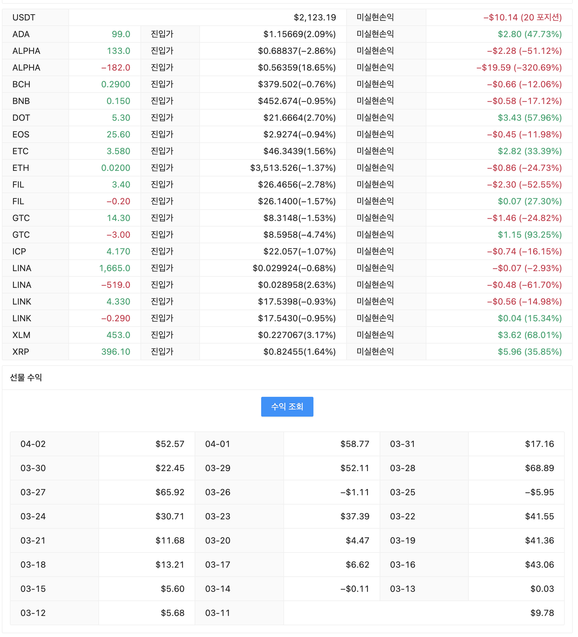 | 가용 잔고 | $1,541 | $1,696 | +$155 (+10.06%) |