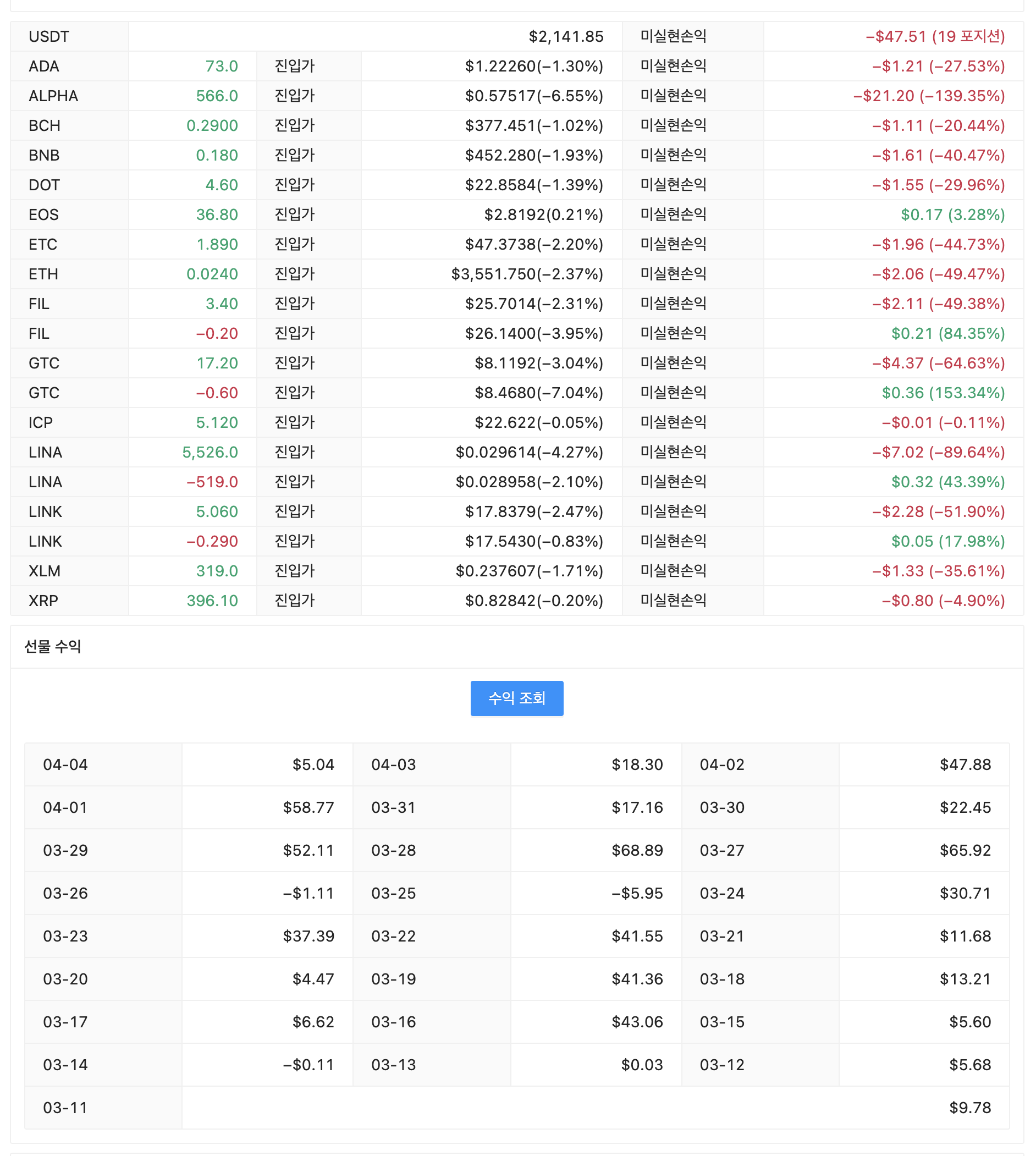 | 지갑 잔고 | $1,541 | $2,142 | +$601 (+39.00%) |